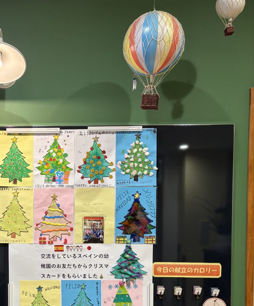 今年も、当園と交流のあるスペインの幼稚園のお友だちから、可愛らしいクリスマスカードが届きました。心温まるメッセージに、子どもたちも職員も笑顔になりました。